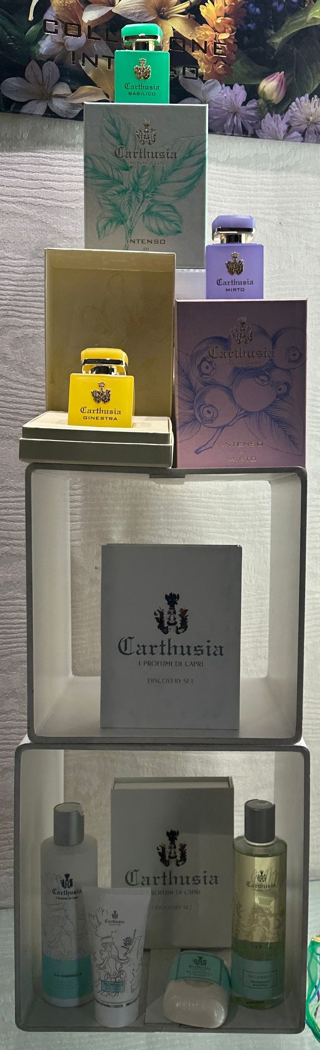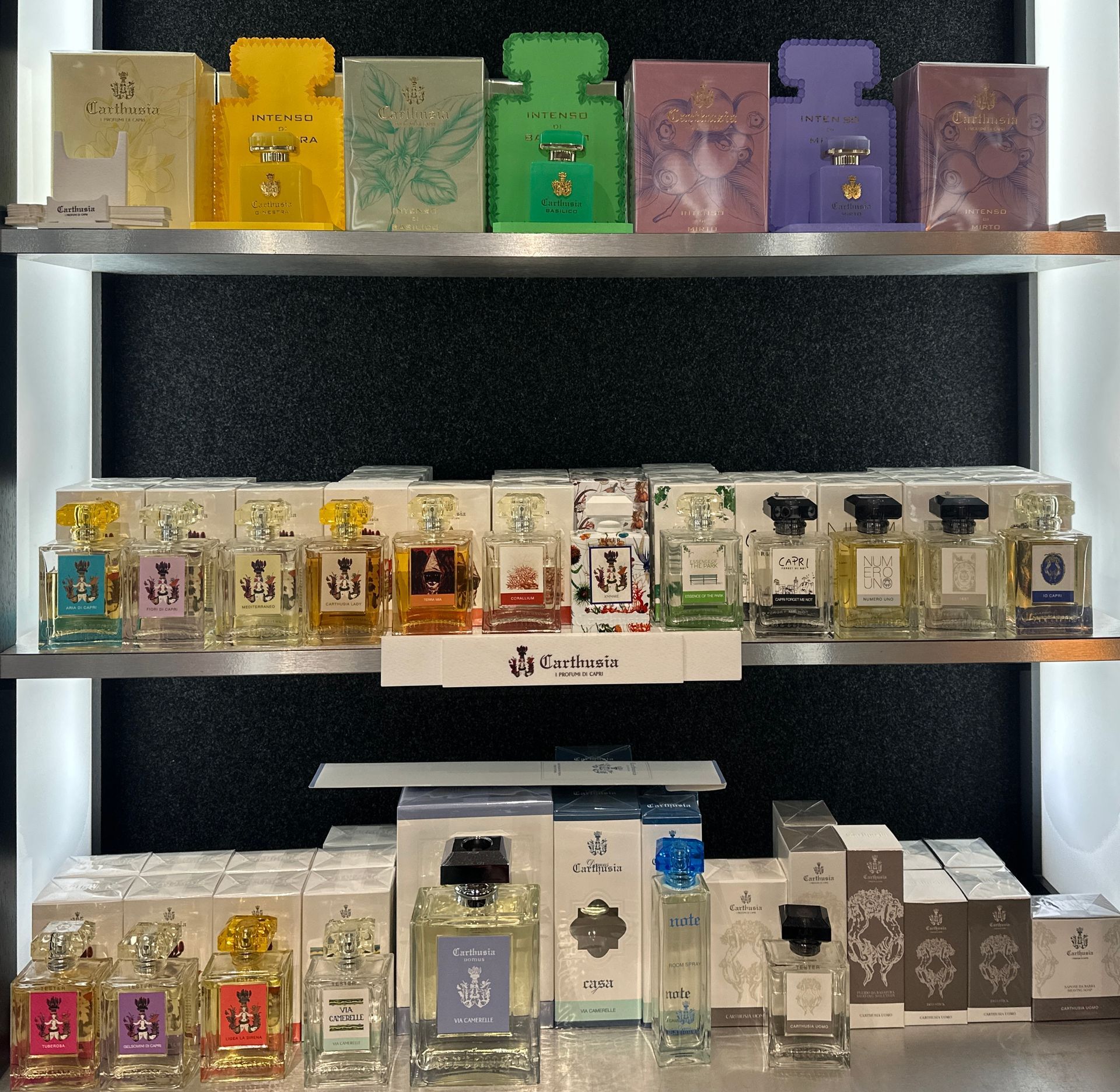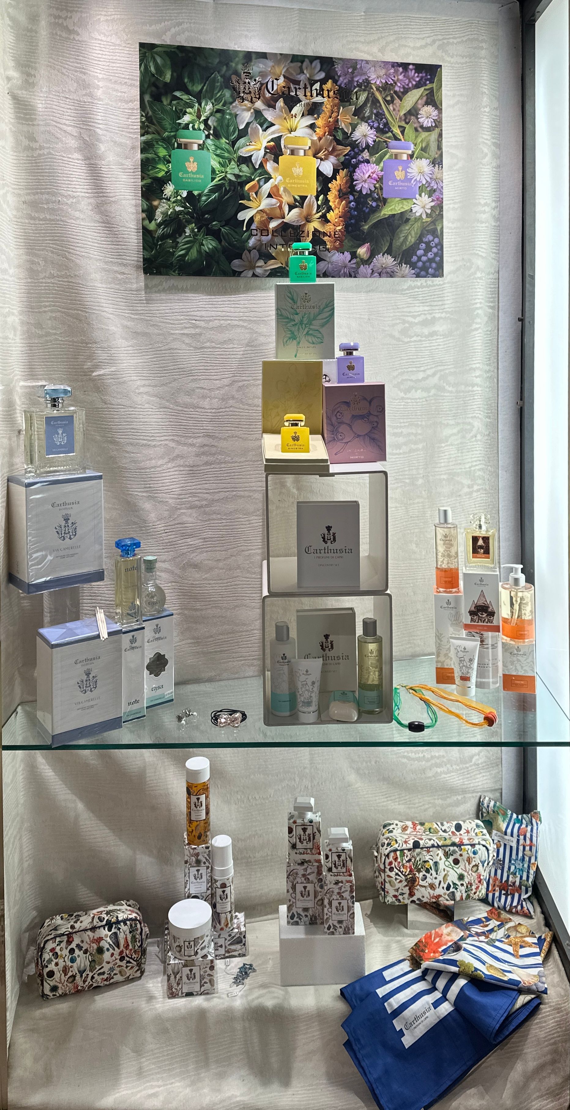 Tra i marchi che è possibile trovare in negozio: Guerlain, Acqua di Parma, Cartier, Scent Bar, Annayake, Acqua di Taormina, Yves Saint Laurent, Medik8. Inoltre, le esclusive profumazioni per ambienti Les Epicier.